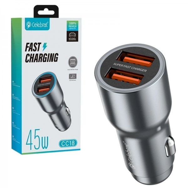 شارژر خودرو 2 پورت Celebrat CC18 یک لوازم جانبی قدرتمند و قابل اعتماد است که برای رفع نیازهای شارژ دستگاه های مدرن در حین حرکت طراحی شده است. این شارژر با خروجی 45 وات برای شارژ سریع گوشی های هوشمند و تبلت ها ایده آل است. این یک انتخاب عالی برای رانندگانی است که در طول رفت و آمد یا سفرهای جاده ای خود به شارژ کارآمد نیاز دارند.