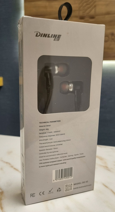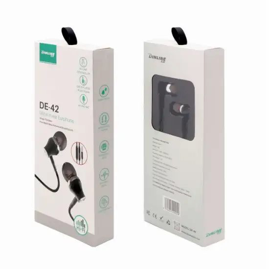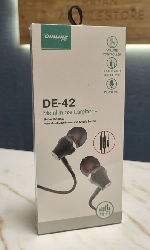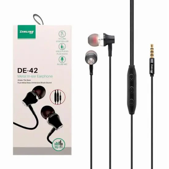 هندزفری با سیم DINLINE مدل DE-42 با کیفیت صدای HD و میکروفون داخلی، گزینهای عالی برای مکالمات با کیفیت و گوش دادن به موسیقی است.