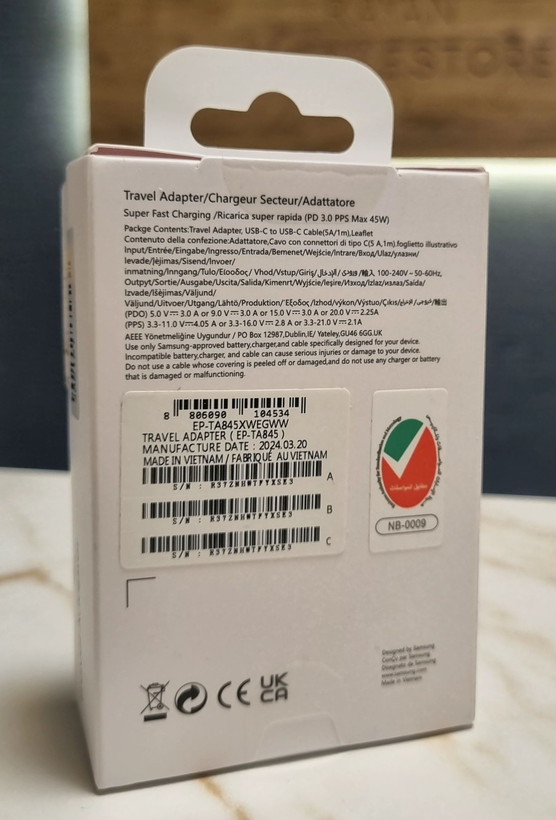 شارژر دیواری سامسونگ 45w مدل EP-TA845 سه شاخه اروپا به همراه کابل دو سر تایپ سی ویتنام