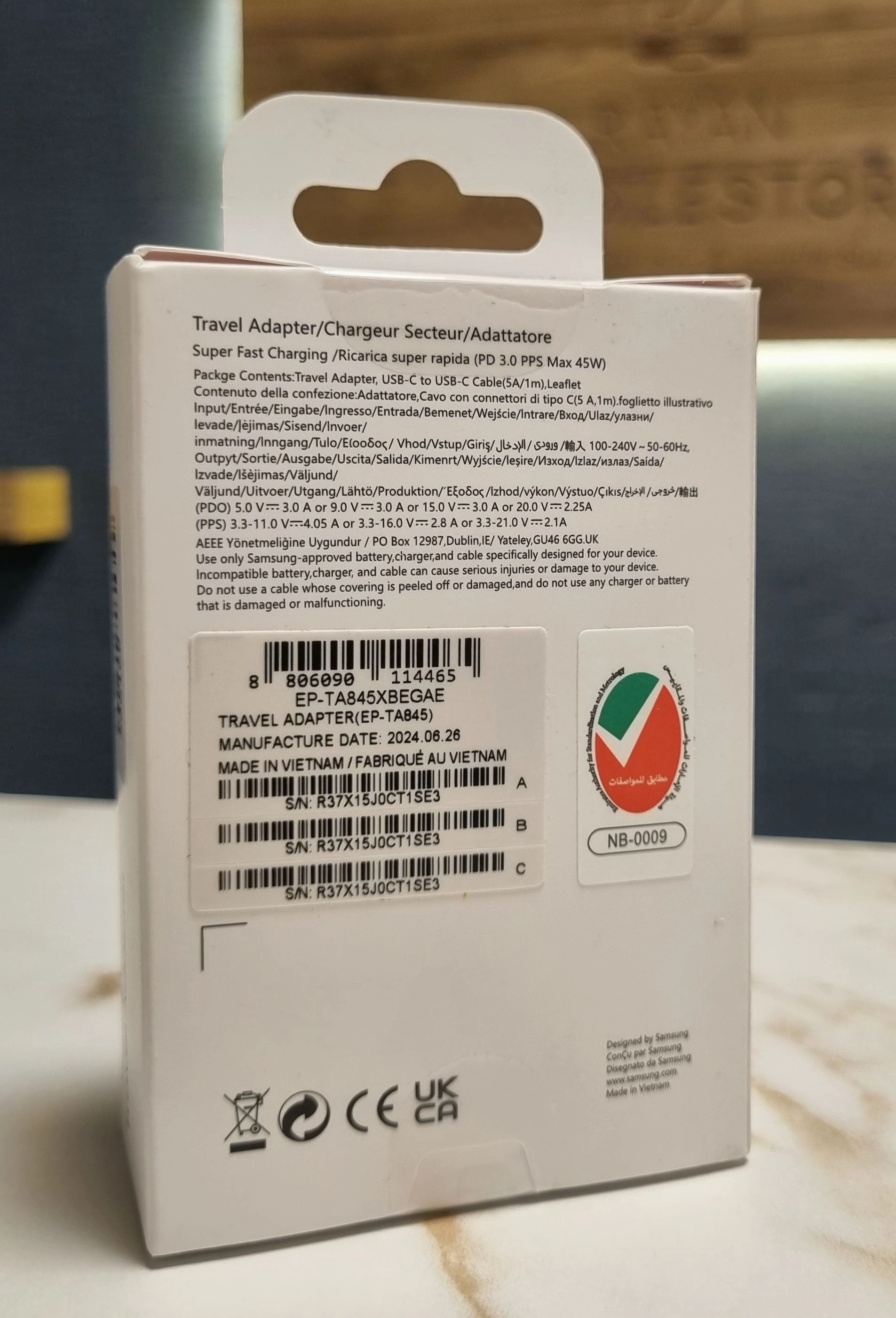 - شارژر دیواری رسمی فوق العاده سریع 45 وات سامسونگ