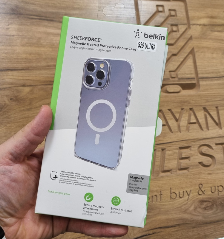 گارد سامسونگ Galaxy S25 Ultra مدل بلکین belkin طرح طلقی شیشه ای شفاف مگسیف دار اورجینال