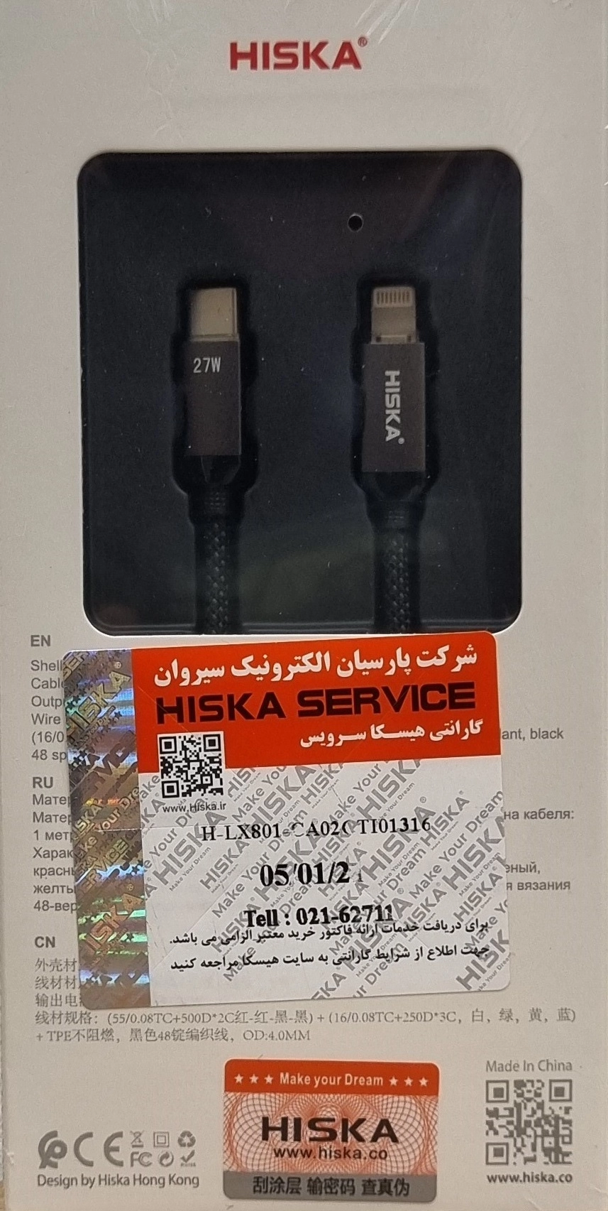 کابل تایپ سی به لایتینگ هیسکا مدل LX-801CL اورجینال گارانتی 3 ماهه