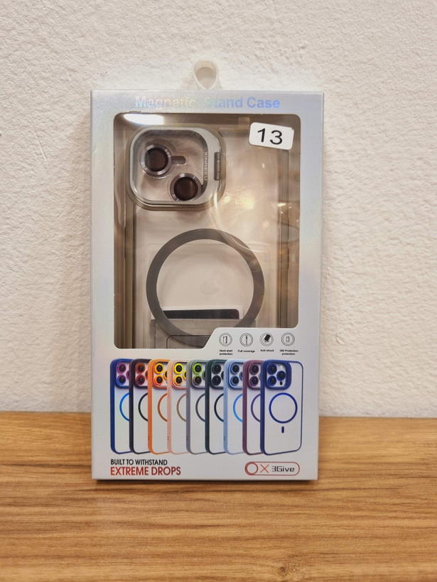 گارد براکتی استندشو گوشی اپل Iphone 13 مگسیف دار به همراه گلس لنز و محافظ اورجینال