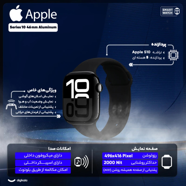 ساعت هوشمند اپل واچ Series 10 46mm Aluminum سری 10 آلومینیوم مدل 46 میلی‌متری