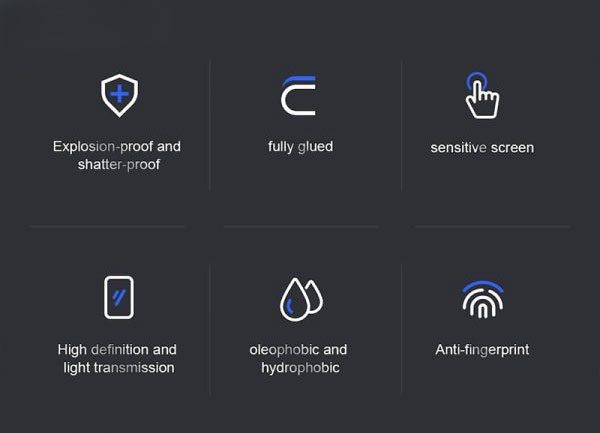همچنین، گلس با پوشش کامل صفحه نمایش، از هرگونه آسیب احتمالی به صفحه نمایش و سنسورها جلوگیری میکند.