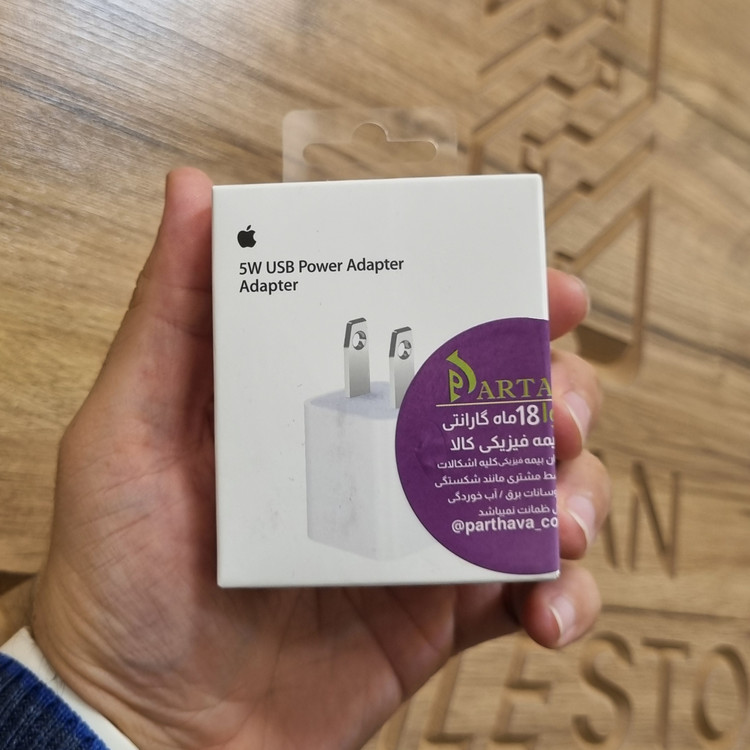 آداپتور و شارژر آیفونی 5 وات اورجینال اپل استور با گارانتی شرکتی