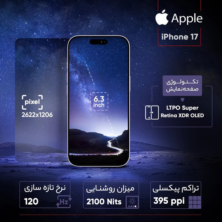 شرکت اپل هر ساله با معرفی نسل جدید آیفونهای خود، استانداردهای تازهای در طراحی، سخت افزار و نرم افزار تعریف میکند. امسال نیز iPhone 17 به عنوان ادامه دهنده مسیر سری محبوب آیفون با تغییرات مهمی در بخش نمایشگر، دوربین و پردازنده معرفی شده است تا ادامه دهنده مسیری باشد که ۱۸ سال پیش استیو جابز فقید آن را آغاز کرد. این گوشی با نمایشگرLTPO Super Retina XDR OLED، سیستم دوربین ۴۸ مگاپیکسلی دوگانه و تراشه A19 روانه بازار شده است. اپل در این نسل تمرکز ویژهای بر روی مقاومت و همچنین کارایی داشته است و قابلیتهایی مانند صفحه نمایش ۱۲۰ هرتزی و پوشش محافظ Cermic Shield 2 را در این گوشی قرار داده است.