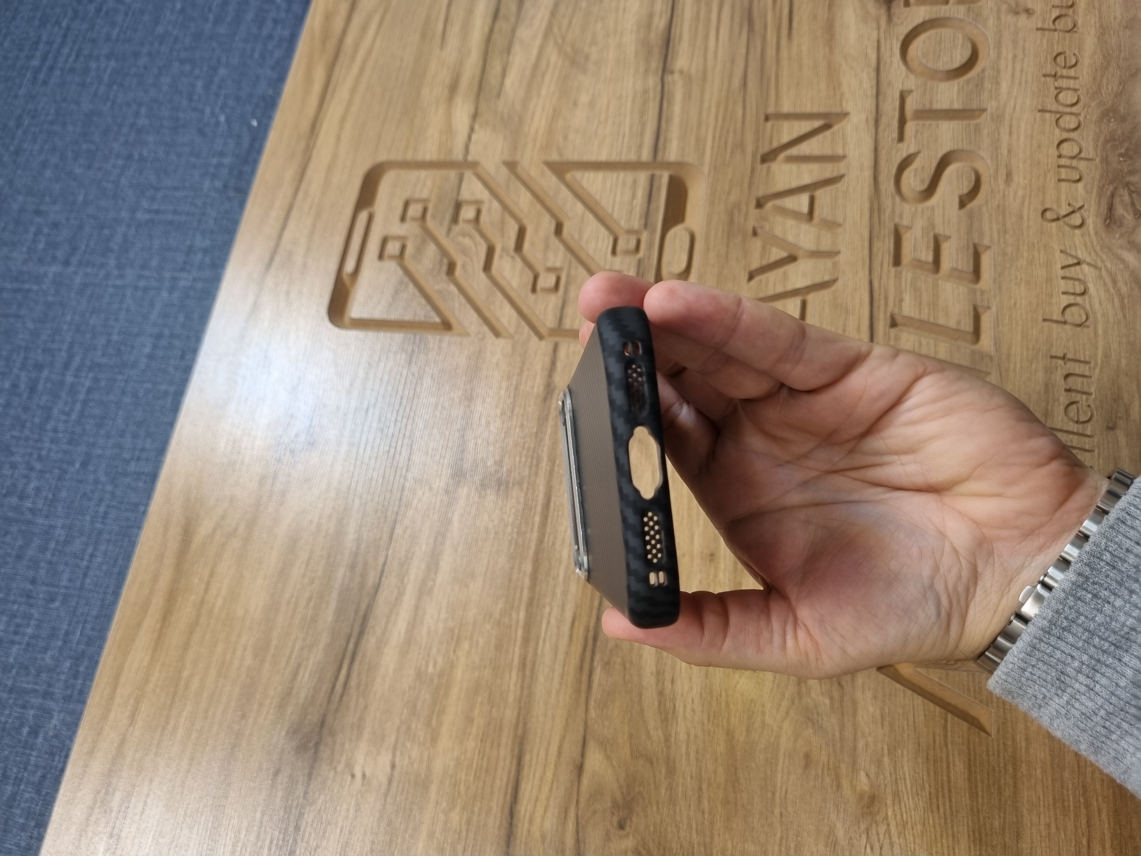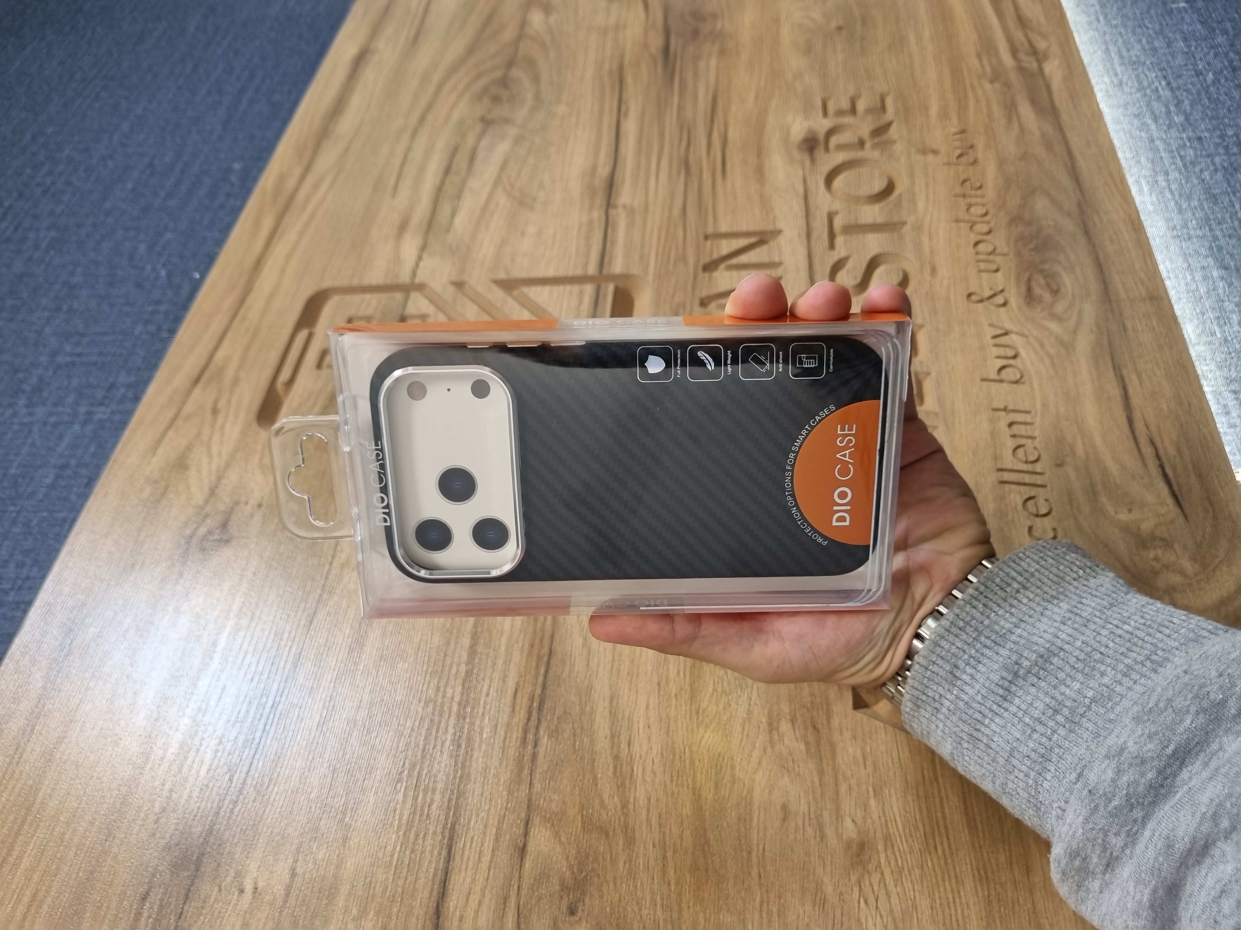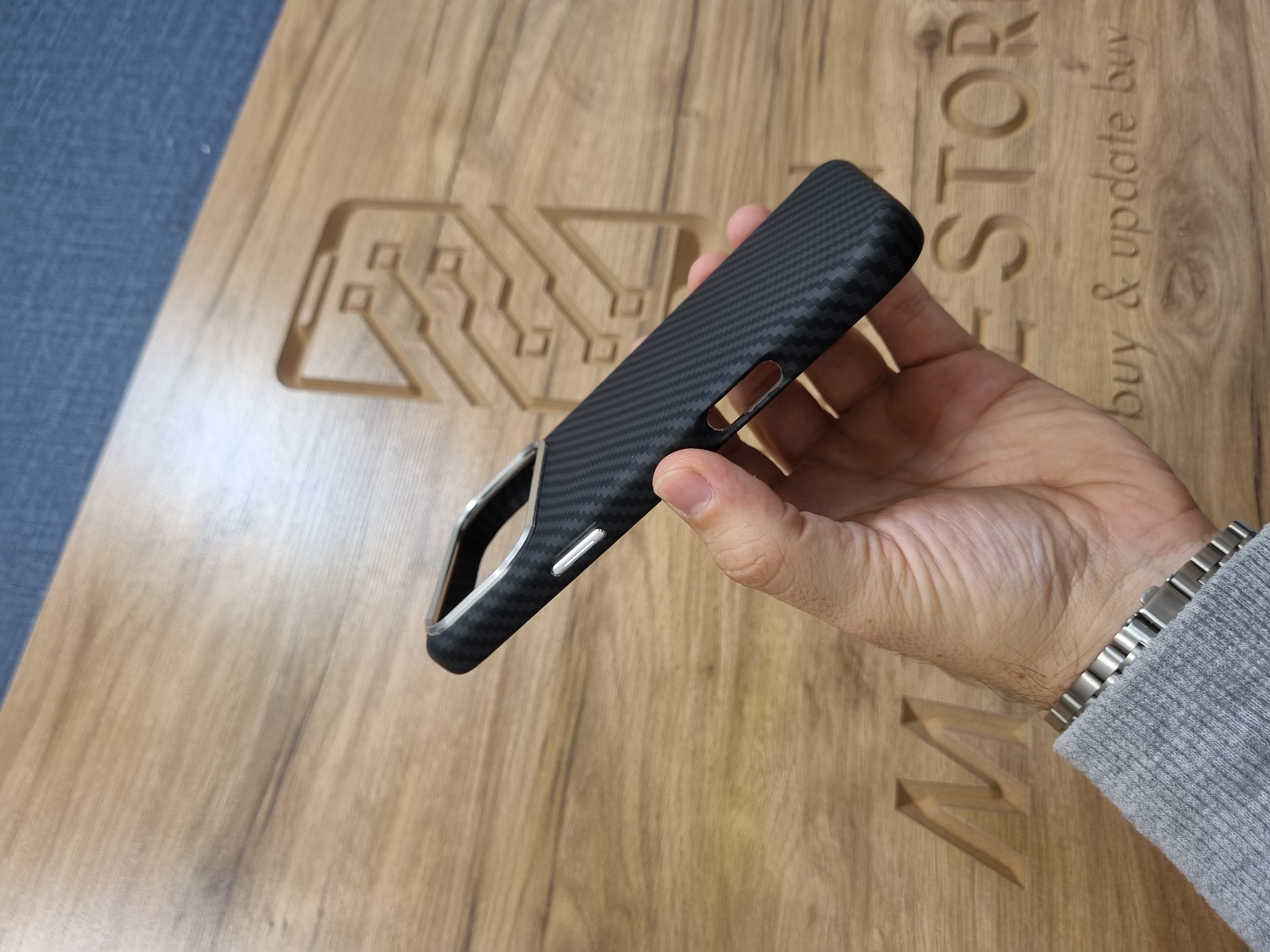 این قاب فناوری ساخت بالایی دارد که توانسته با حفظ خوش دستی (ضخامت کم) ، تاییدیه های لازم Military Drop Test اتحادیه اروپا و امریکا را از ارتفاع 3 متری کسب کند. داخل این کاور همانطور که در تصاویر مشخص است حالت مشبکی دارد تا بتواند حرارت گوشی را به بیرون منتقل کرده و گوشی کمتر از حالت عادی داغ بکند. استایل کلاسیک ، نوآوری های انحصاری موفی قاب در این طرح و ثبات رنگ چندین ساله باعث شده تا این کاور در مارکت جهانی فروش خوبی را کسب کند. قاب فیبرکربن تحت فشار زیادی در فرآیند گرمایی پیشرفته ای قالب گیری شده است که منجر به ادغام فیبر کربن بافته شده با پوسته پشت قاب از جنس پلی پروپیلن شده است. سطح این قاب در فرآیند تولید با به کارگیری فناوری اسپری روغن لاستیک تولید شده است که باعث می شود تا سطح این قاب نمایی مات و براق داشته باشد و همچنین اثر انگشت به راحتی هر چه تمام تر از روی این قاب پاک شود. قالب گیری کاملا مکانیزه در تولید این قاب باعث شده است تا شکاف های تعبیه شده در این قاب کاملا با بدنه گوشی شما مطابقت داشته باشد به طوری که پورت ها و دیگر اجزای گوشی موبایل هم تراز هستند و این ویژگی ها باعث می شود تا کاربر حس کند که تمامی قابلیت های تلفن همراه تحت کنترل او قرار دارد. همچنین روی دکمه برای محافظت در برابر گرد و غبار پوشانده شده است.