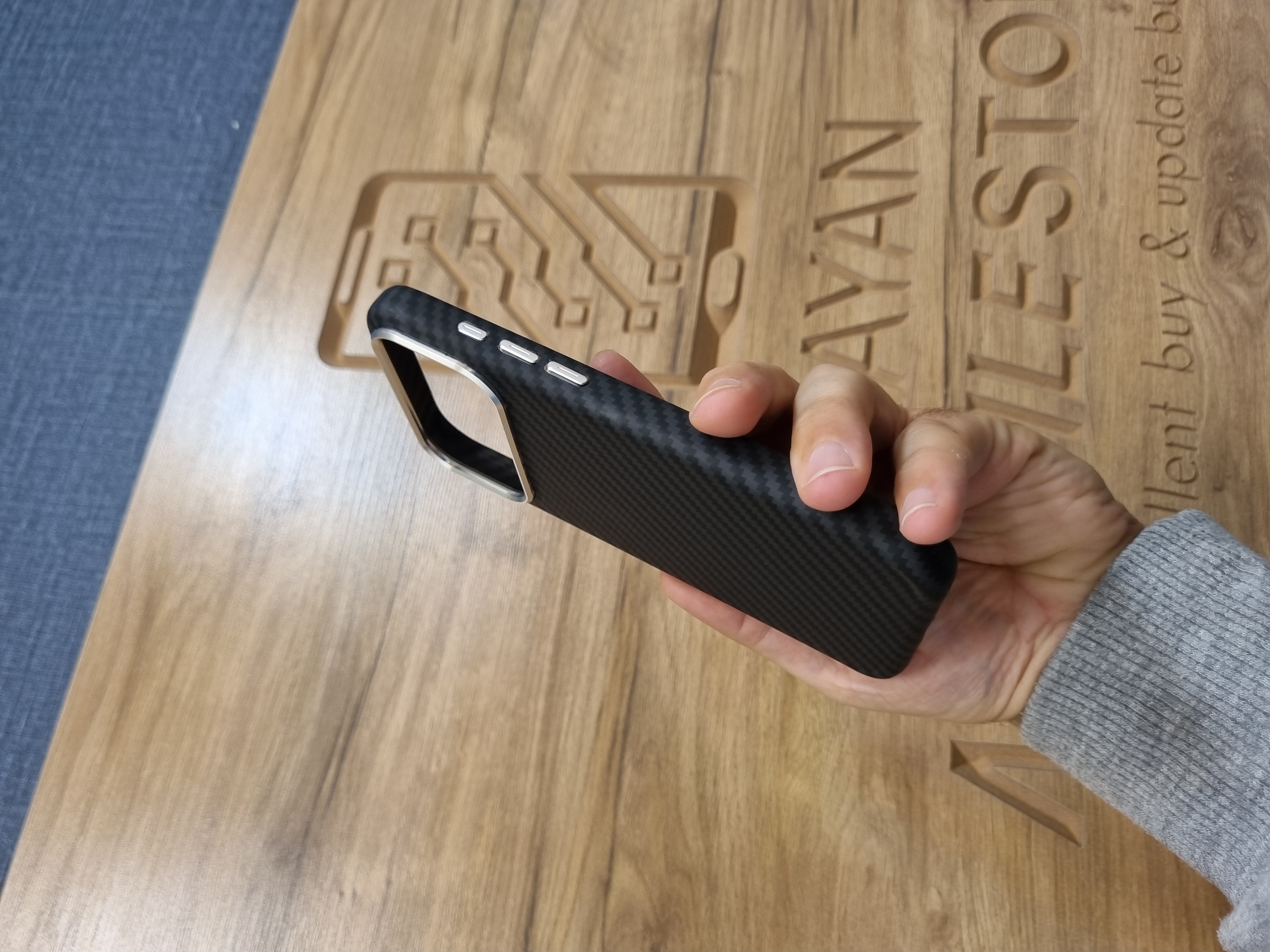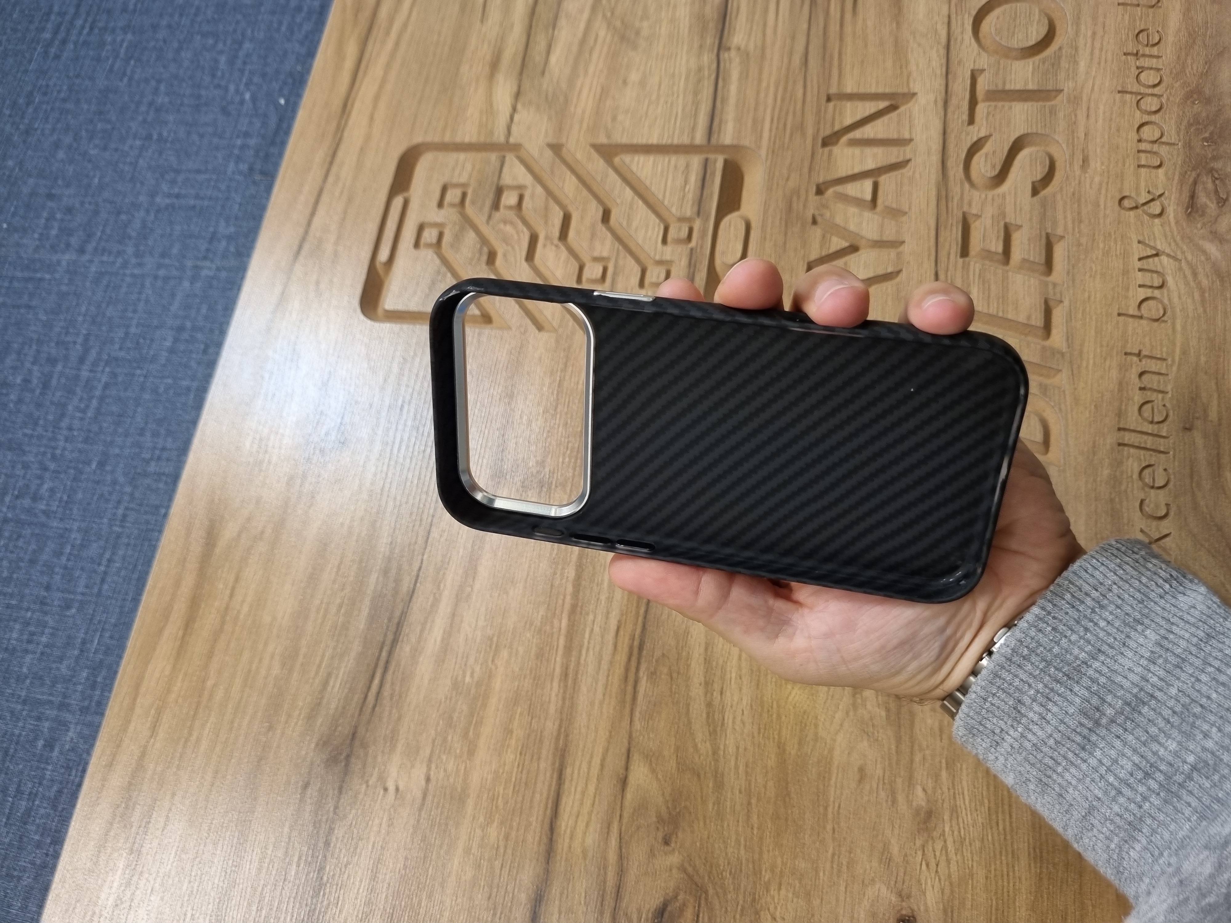 این قاب فناوری ساخت بالایی دارد که توانسته با حفظ خوش دستی (ضخامت کم) ، تاییدیه های لازم Military Drop Test اتحادیه اروپا و امریکا را از ارتفاع 3 متری کسب کند. داخل این کاور همانطور که در تصاویر مشخص است حالت مشبکی دارد تا بتواند حرارت گوشی را به بیرون منتقل کرده و گوشی کمتر از حالت عادی داغ بکند. استایل کلاسیک ، نوآوری های انحصاری موفی قاب در این طرح و ثبات رنگ چندین ساله باعث شده تا این کاور در مارکت جهانی فروش خوبی را کسب کند. قاب فیبرکربن تحت فشار زیادی در فرآیند گرمایی پیشرفته ای قالب گیری شده است که منجر به ادغام فیبر کربن بافته شده با پوسته پشت قاب از جنس پلی پروپیلن شده است. سطح این قاب در فرآیند تولید با به کارگیری فناوری اسپری روغن لاستیک تولید شده است که باعث می شود تا سطح این قاب نمایی مات و براق داشته باشد و همچنین اثر انگشت به راحتی هر چه تمام تر از روی این قاب پاک شود. قالب گیری کاملا مکانیزه در تولید این قاب باعث شده است تا شکاف های تعبیه شده در این قاب کاملا با بدنه گوشی شما مطابقت داشته باشد به طوری که پورت ها و دیگر اجزای گوشی موبایل هم تراز هستند و این ویژگی ها باعث می شود تا کاربر حس کند که تمامی قابلیت های تلفن همراه تحت کنترل او قرار دارد. همچنین روی دکمه برای محافظت در برابر گرد و غبار پوشانده شده است.