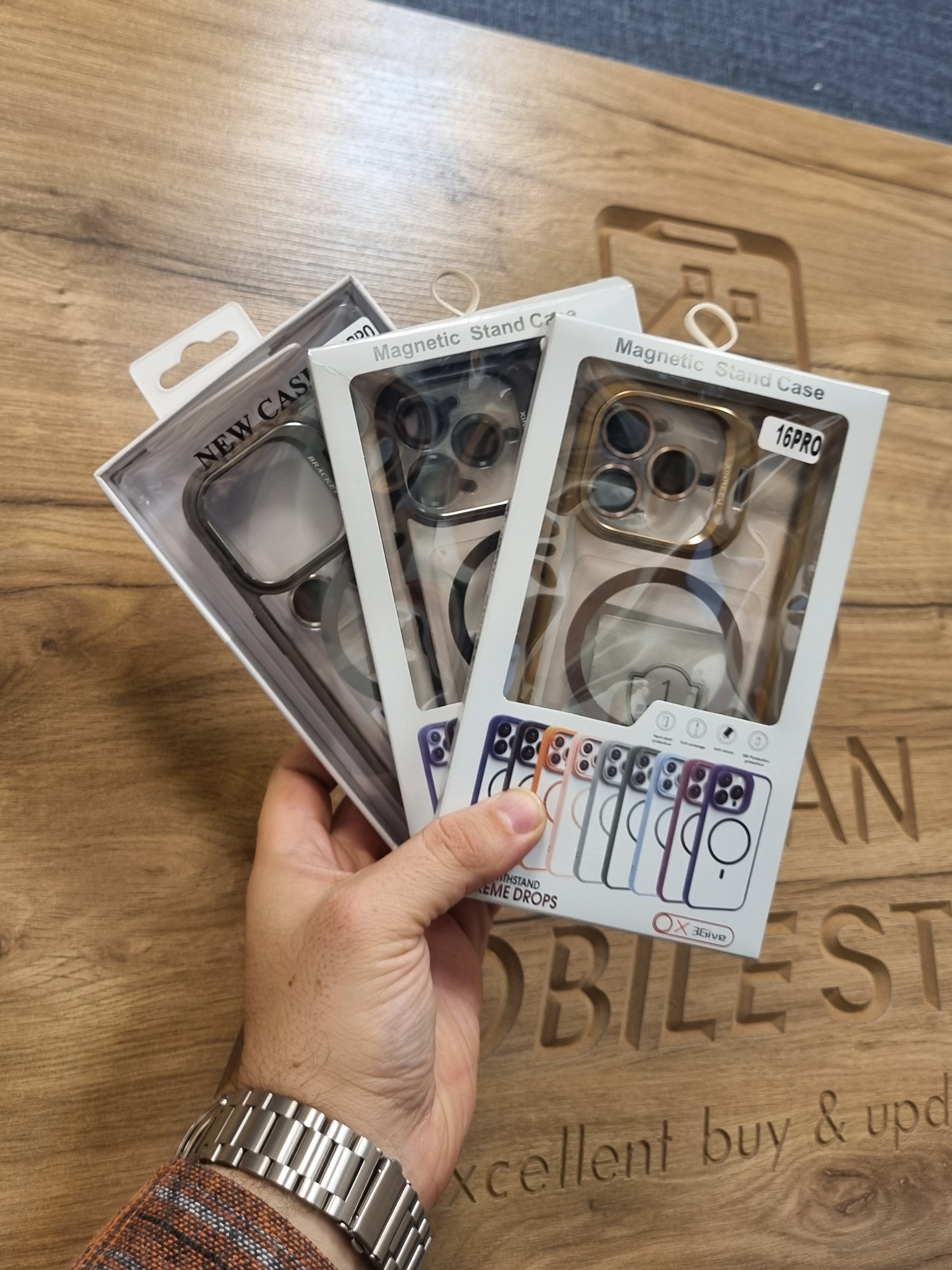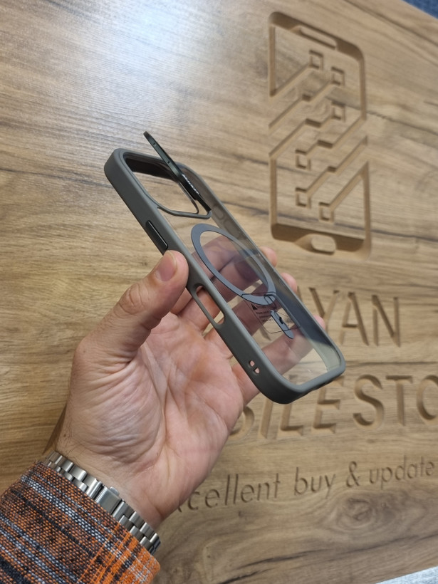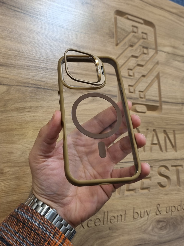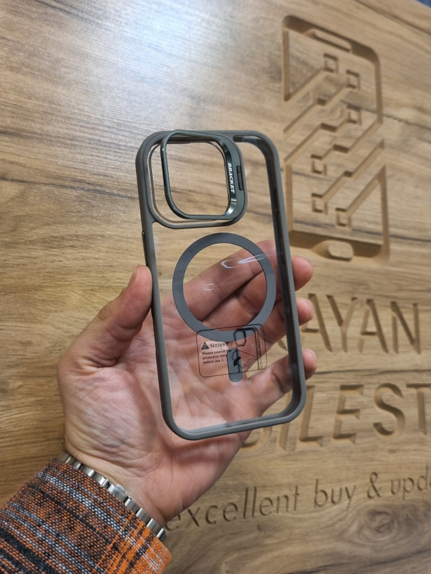 گارد براکتی استندشو گوشی اپل Iphone 16 pro مگسیف دار به همراه گلس لنز و محافظ اورجینال