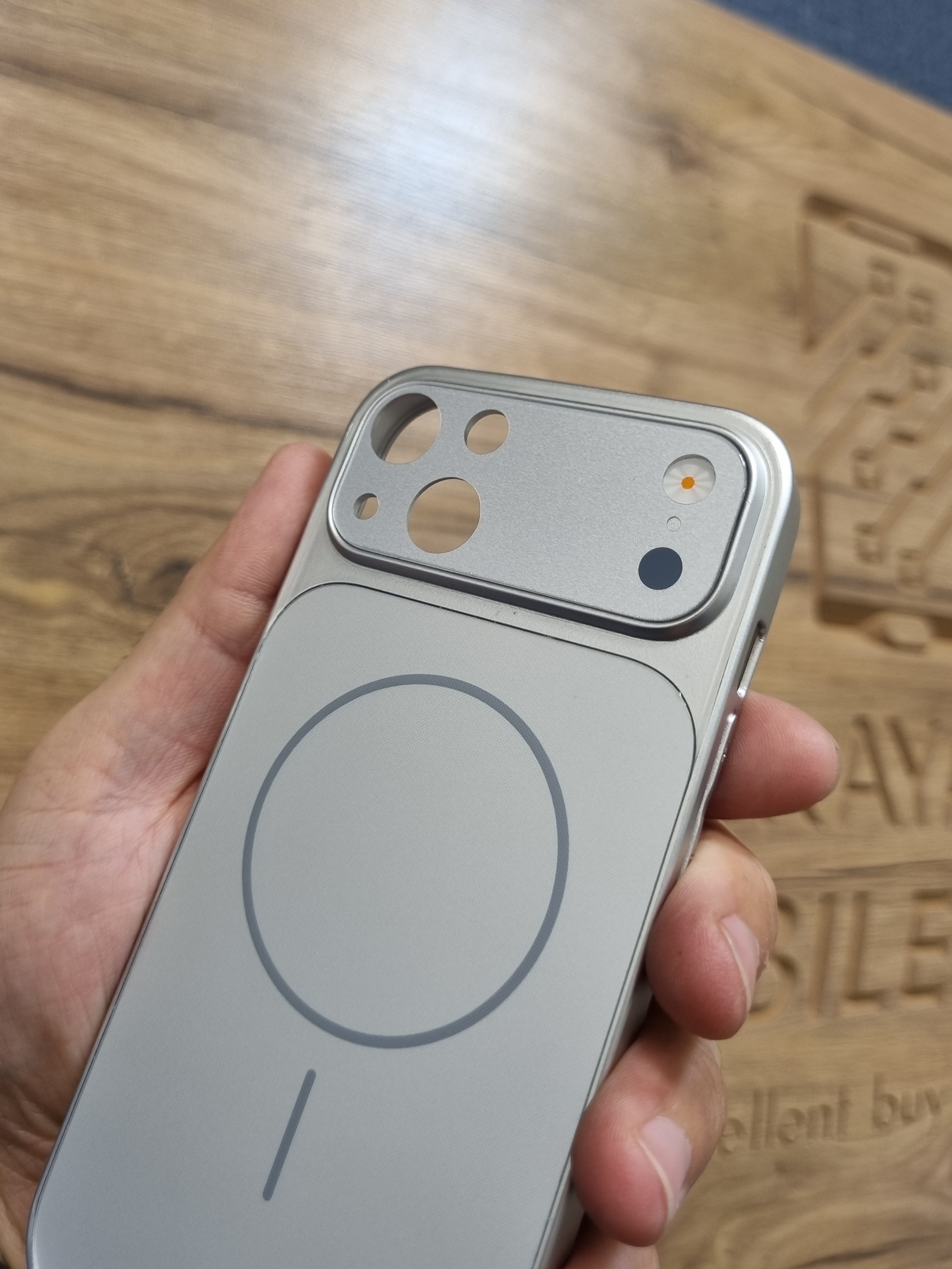 نکتهی قابلتوجه در این قاب، شبیهسازی دقیق بخش دوربین و فریم دور دستگاه است. در نگاه اول، تشخیص تفاوت این قاب با آیفون 17 واقعی بسیار دشوار است. طراحی دقیق لنزها و رنگ فریم براق، بهصورت یکپارچه با بدنه کار شده تا حس گوشی نسل جدید را منتقل کند.