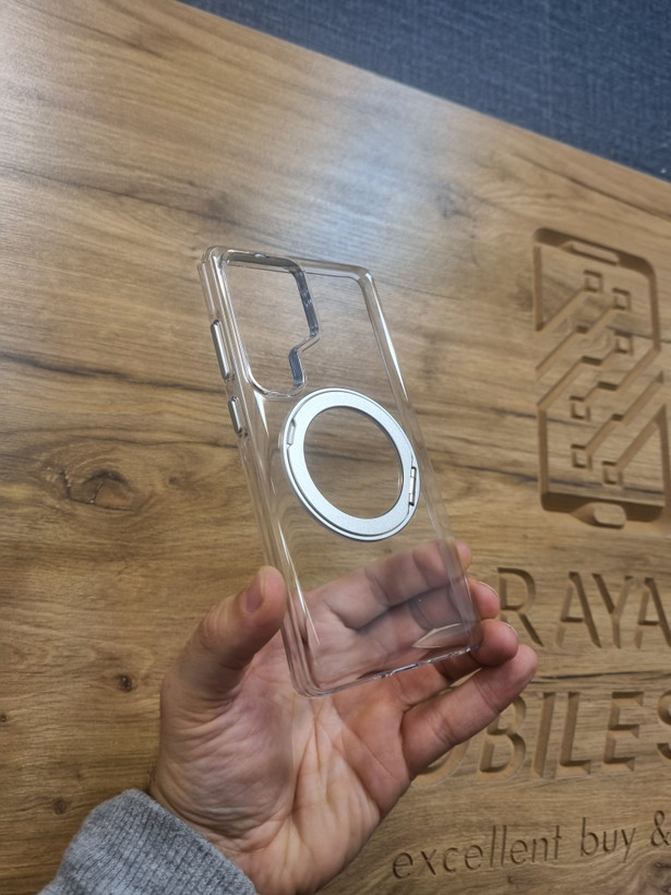 قسمت پشتی کاور از کریستال بی رنگ شفاف شاین ساده می باشد تا ظاهری خاص و شیک به گوشی موبایل شما بدهد و همچنین پشت گارد یک مگنت 360 درجه بسیار قوی و محکمی قراردارد که هم میتوانید بصورت شارژ وایرلس استفاده کنید و هم بصورت استند جهت تماشای برنامه مورد علاقه تان استفاده کنید.