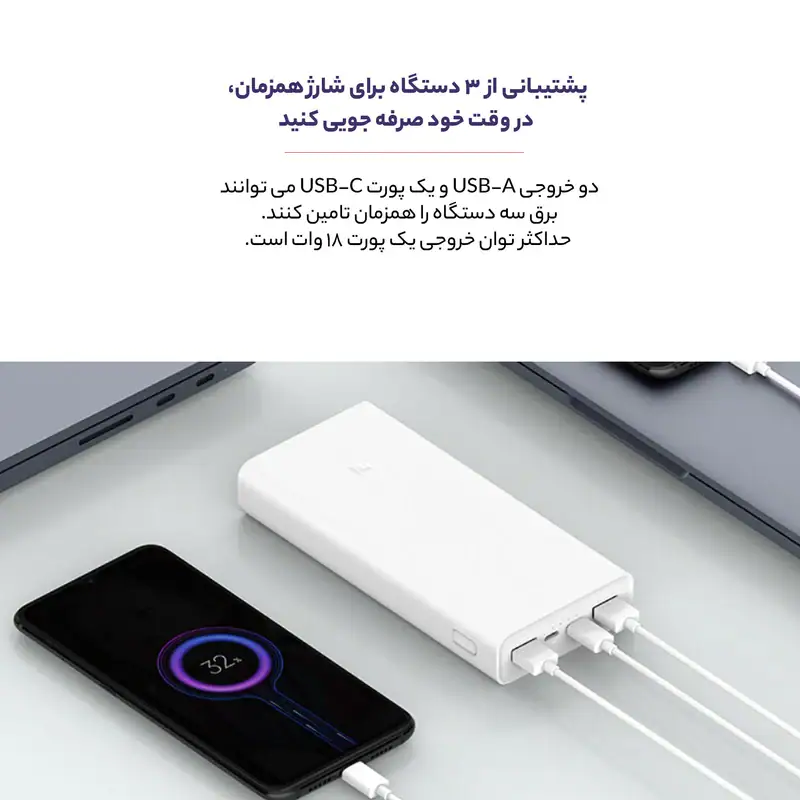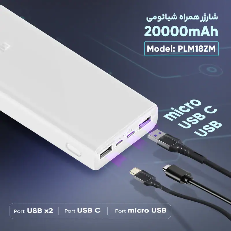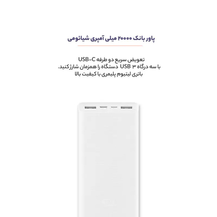 پاوربانک فست شارژ شیائومی مدل PLM18ZM Xiaomi Mi PowerBank 3 ظرفیت 20000 میلی آمپر ساعت