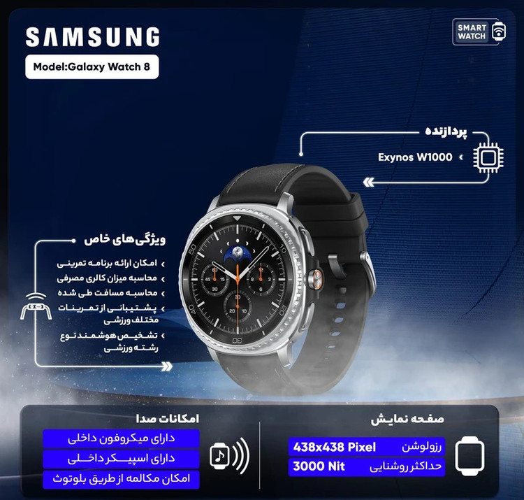 ساعت هوشمند 46 میلی‌متری سامسونگ مدل Galaxy Watch 8 Classic با بند چرمی