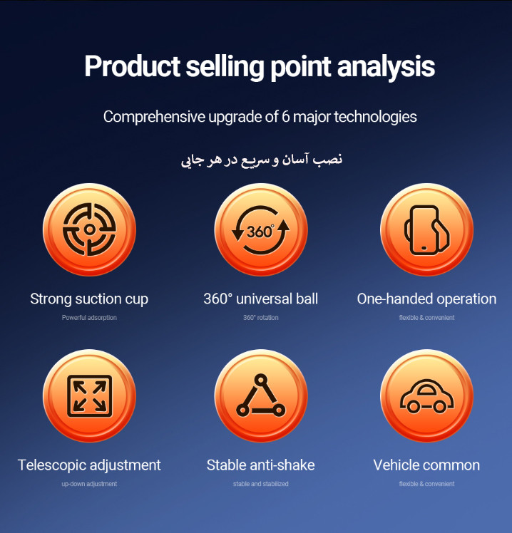 سازگاری گسترده: این پایه با اکثر گوشیهای هوشمند موجود در بازار و همچنین دستگاههای دیجیتال مانند GPS سازگار است.